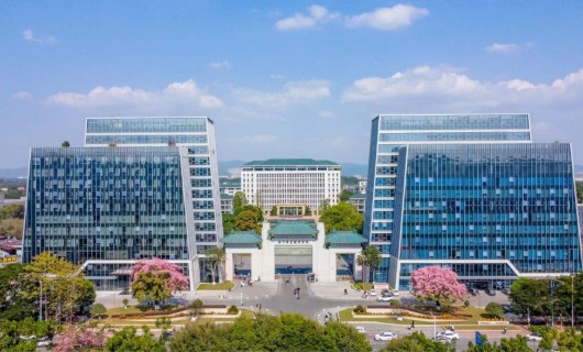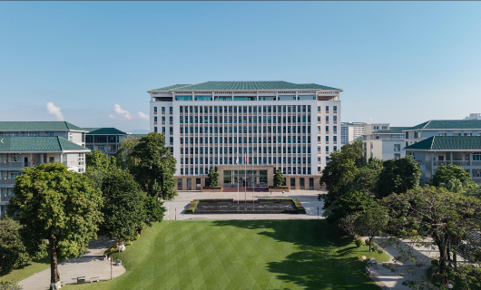 创新创业大厦和学术交流中心,中间是集聚岭南建筑风格的学校大门,总建筑面积达4万多平方米,斥资超2.3亿元建成,楼层高13层。两栋大楼的建设是为学校学术交流培训、创新创业实习等活动的开展提供广阔的空间和强大的助力。“粤港澳大湾区职业教育发展基地”等一系列人才孵化基地也将有望落户华夏。